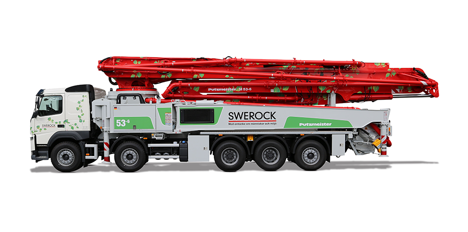 A Putzmeister M 53-6 önjáró betonpumpája első osztályú megoldás magas födémek betonozására és olyan építkezéseken, ahol követelmény a rugalmas gém. Ezt az önjáró betonpumpát különböző gyártók alvázára lehet építeni.