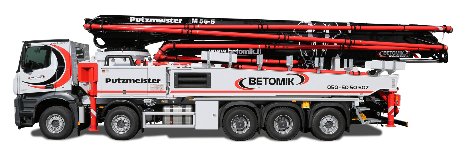 Az M56-5 Putzmeister önjáró betonpumpát ott használják, ahol a többiek már túl rövidek: Nagy építkezéseken, hídépítésnél, többemeletes házaknál, vagy födém betonozásakor. A hosszú, RZ-kihajtogatású elosztógéme ellenére a gép 43 tonna alatti össztömeggel rendelkezik. Az önjáró betonpumpát alternatív módon négy vagy öttengelyes alvázra lehet felépíteni.