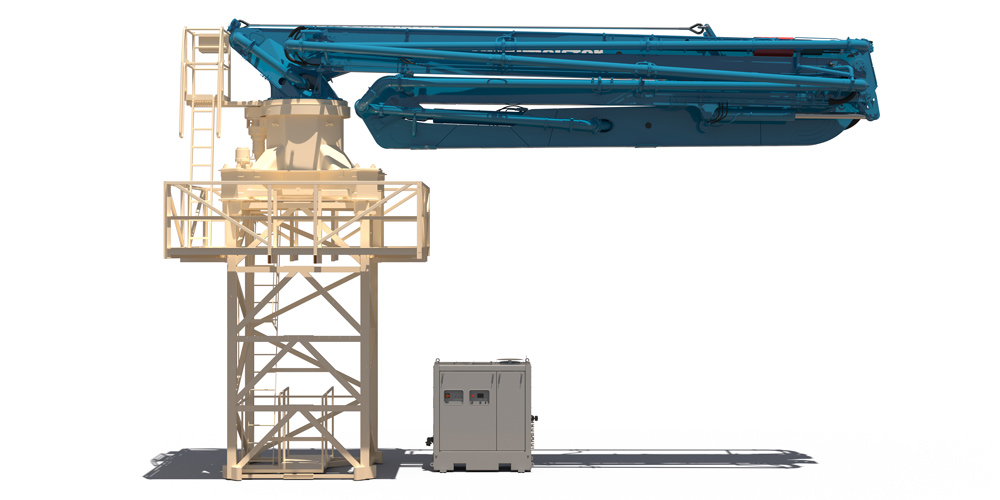 - A gémbak és a rácsos torony adaptere közötti gyorsoldó rendszer teszi lehetővé az elosztógém gyors fel- és leszerelését